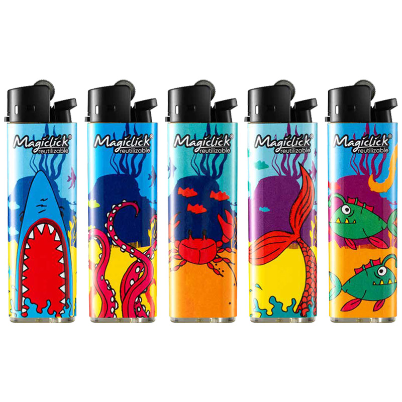 • Encendedor reutilizable a piedra con diseño Marino oceánico.