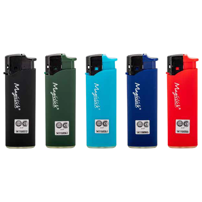Encendedor MagiClick Turbo Goma Sólido, modelo catalítico de alta potencia con recubrimiento completo en goma. Sistema catalítico windproof (a prueba de viento) ideal para uso en exteriores. La llama tipo soplete ofrece potencia de fuego superior, perfecta para encender cigarros, parrillas y aplicaciones que requieren mayor intensidad. Recubrimiento en goma genera excelente grip y tacto agradable, además de proteger contra golpes. Sistema catalítico recargable que garantiza más de 1000 encendidos por carga. Incorpora regulador de intensidad de llama para ajustar según necesidad. Disponible en diferentes combinaciones de colores sólidos que lo hacen coleccionable. Dimensiones: 80mm x 30mm x 10mm, tamaño compacto ideal para bolsillo. Construcción robusta que resiste uso intensivo y condiciones adversas. Sistema de recarga sencillo con gas butano. Presentación en bulto de 450 unidades para distribuidores mayoristas. Display de 15 unidades. Marca argentina MagiClick reconocida por calidad e innovación. Ideal para fumadores de cigarros y uso outdoor.