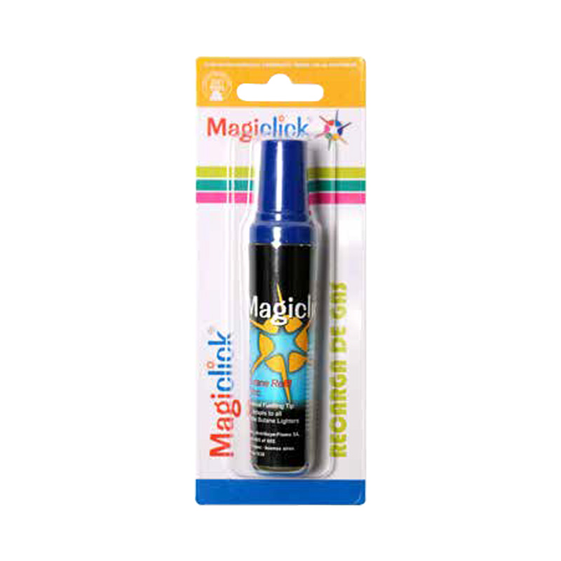 Recarga de Gas Butano MagiClick de 18cc, el repuesto esencial para mantener tus encendedores MagiClick siempre listos. Este tubo está relleno con gas butano de alta pureza, garantizando un encendido eficiente y prolongado. Cuenta con pico universal de metal que se adapta a todo tipo de encendedores recargables de la marca. Cada tubo de 18cc rinde aproximadamente 5 cargas completas, dependiendo de la capacidad del encendedor que se esté recargando. Incluye instrucciones de uso claras y detalladas para una recarga segura y correcta. Fácil de usar: solo se necesita invertir el encendedor, presionar el pico en la válvula de carga y mantener presionado algunos segundos. Tamaño compacto ideal para llevar, permitiendo recargar tus encendedores en cualquier momento y lugar. Presentación en blister individual que protege el producto. Display de 240 unidades ideal para distribuidores y comercios mayoristas. Producto original MagiClick con la calidad que caracteriza a la marca argentina desde 1963.